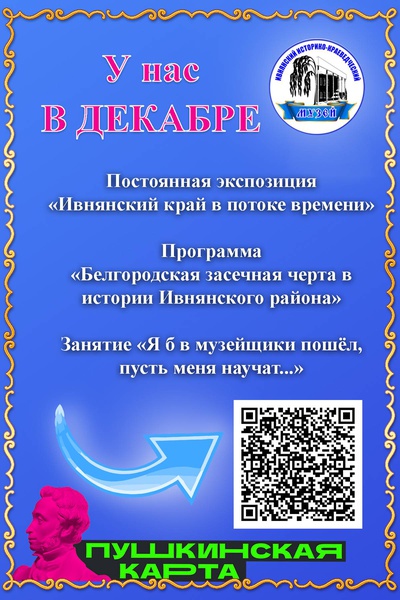 Дорогие друзья! Предлагаем вашему вниманию афишу мероприятий по Пушкинской карте на ДЕКАБРЬ!
