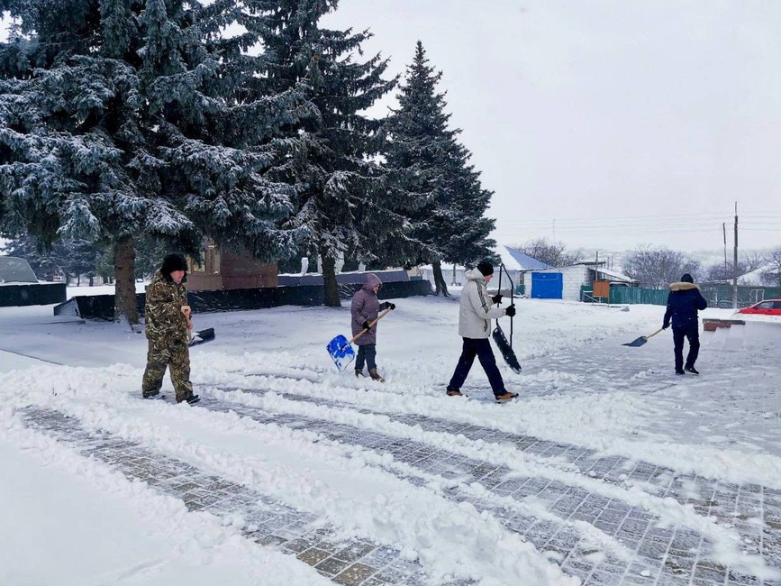 Сотрудники Верхопенского филиала Ивнянского музея и Верхопенского центра культурного развития начинают рабочий день с уборки первого февральского снега!