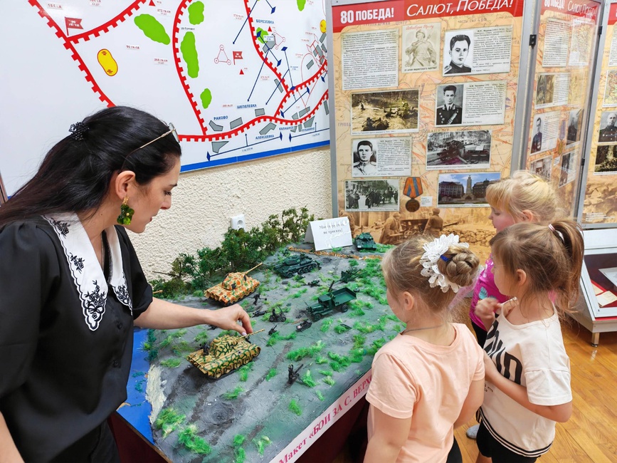 Макет «БОИ ЗА СЕЛО ВЕРХОПЕНЬЕ» всегда привлекает к себе особенное внимание посетителей! Наши гости, участники младшей группы народного коллектива «Сударушка», на интерактивной экскурсии познакомились с историей военных действий на территории родного села.
