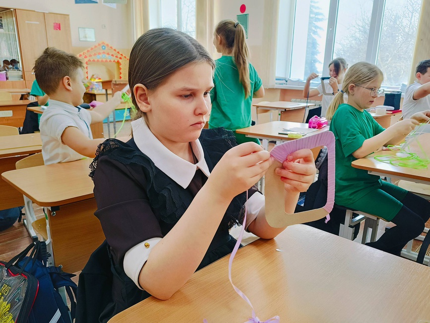 В ходе мастер-класса школьники не только узнали историю и значение праздника, но и смастерили необычную магнитную фоторамку, которую подарят своим папам или дедушкам.