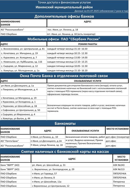 Важная информация! Точки доступа к финансовым услугам.