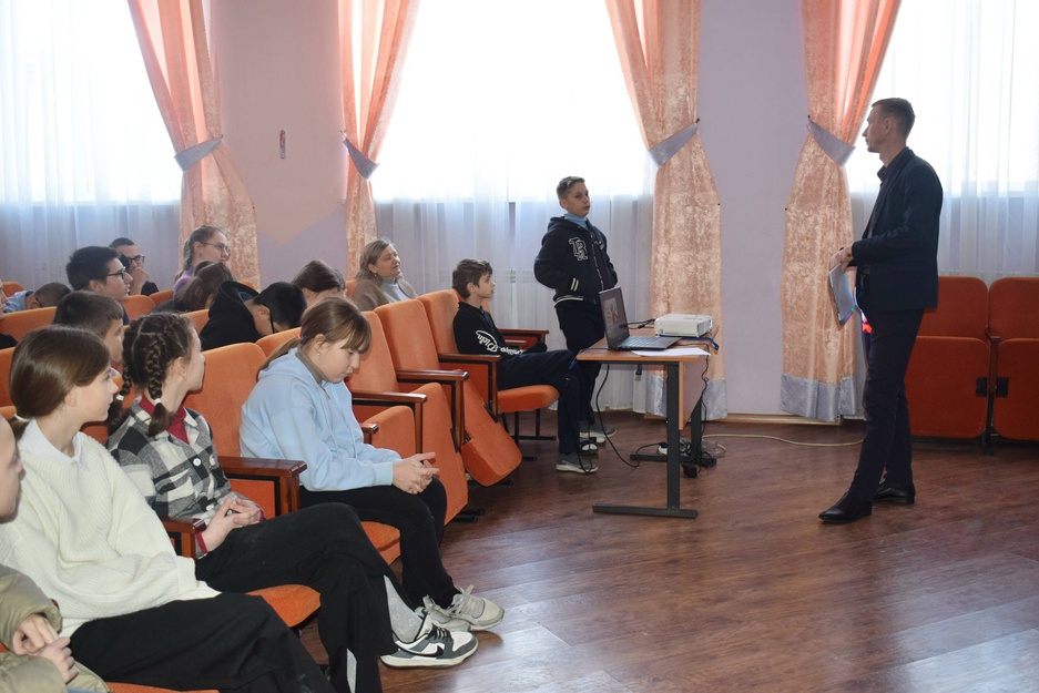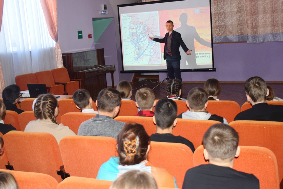 Лектор Всероссийского общества "ЗНАНИЕ", научный сотрудник Ивнянского музея ЕВГЕНИЙ ХАХИН , рассказал о победоносных сражениях войны, о героизме и мужестве солдат, приближавших Победу на фронтах, а также о работе простых людей в тылу.