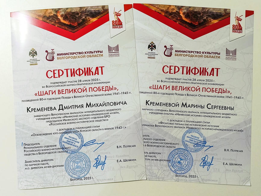 Сотрудники музея приняли участие во Всероссийской конференции «ШАГИ ВЕЛИКОЙ ПОБЕДЫ», которая состоялась 28 апреля в Музее-диораме «Курская битва. Белгородское направление».