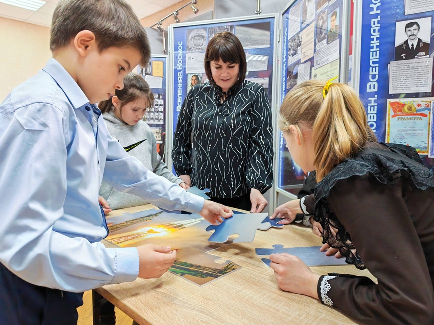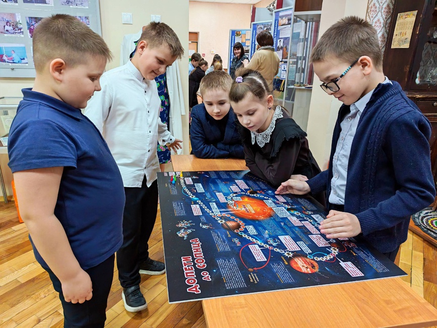 Последними посетителями экспозиции стали ученики 3‑го класса Верхопенской школы (кл. рук. Долгих Л.Н.). Ребята познакомились с удивительными фактами о космосе, узнали о его покорении, а также с удовольствием сыграли в "космические" игры.
